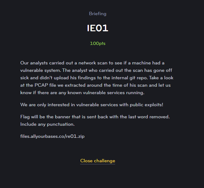 Moving forward, the next challenge had a PCAP for examination to find some vulnerable services.