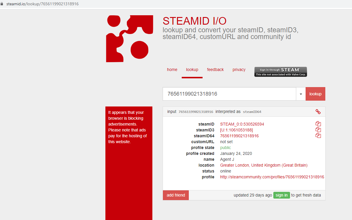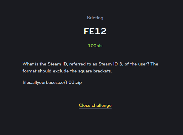 With this information and a nice little tool found online, the profile ID was converted to SteamID3 and submitted as the flag.