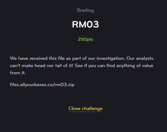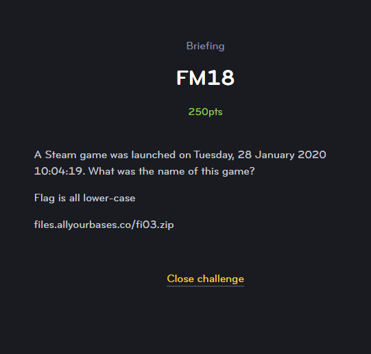 Getting away from Steam now, the next challenge presented the competitor with finding out some information about a file downloaded from the intranet.