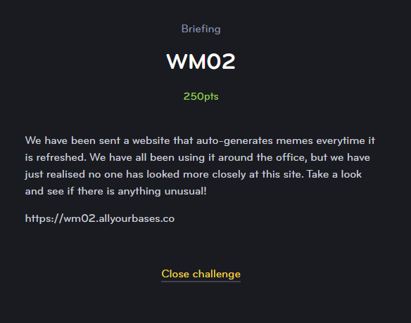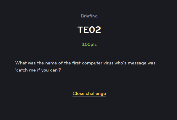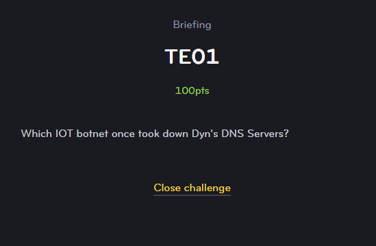 This was the first challenge I tackled and like most in this section, was a part of a Jeopardy style question system aimed at some basic research and information gathering skills.