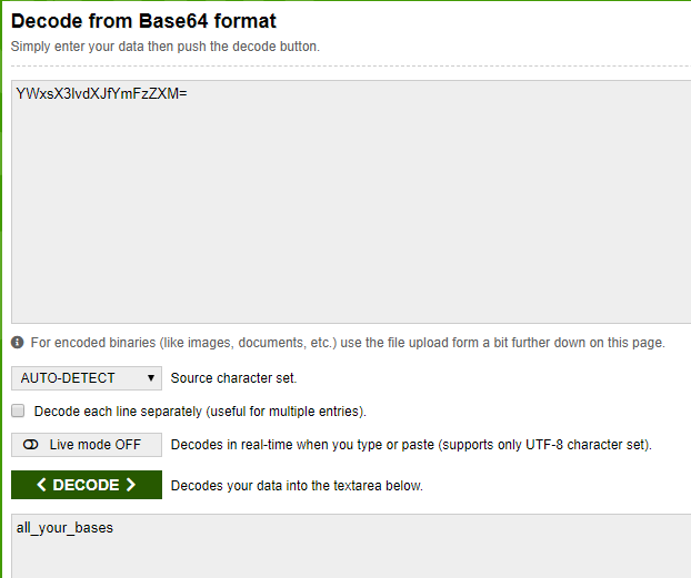 Another quick and easy one. This challenge was to decode a Base64 string to get the flag.