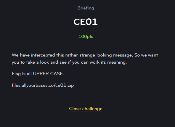 I personally wanted to go the manual path and decoded the message by hand. This revealed a conversation about weather and a meeting for an agent doing super secret spy stuff but look at that, a flag in there. I forgot to get my screencap of the flag when decoded (OOPS!) but it came out to something along the lines of you_type_too_much. Submitted and moving on.
