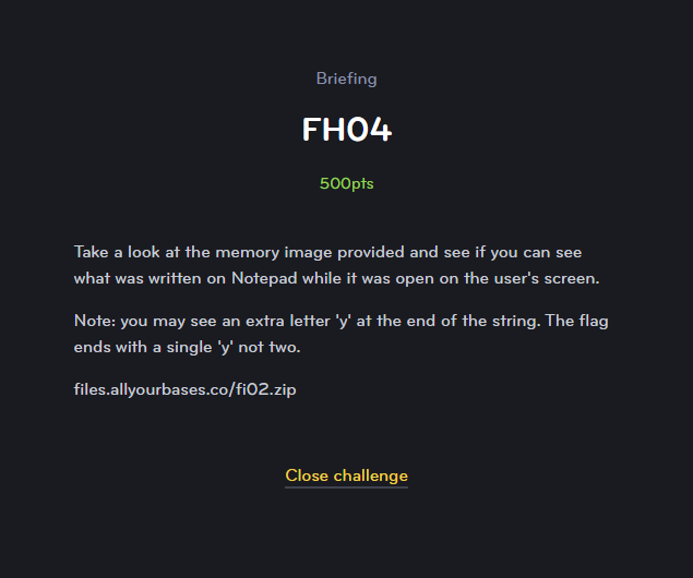 This challenge was really cool to play with. The competitors were provided with a vmem file and tasked with finding some information in it.