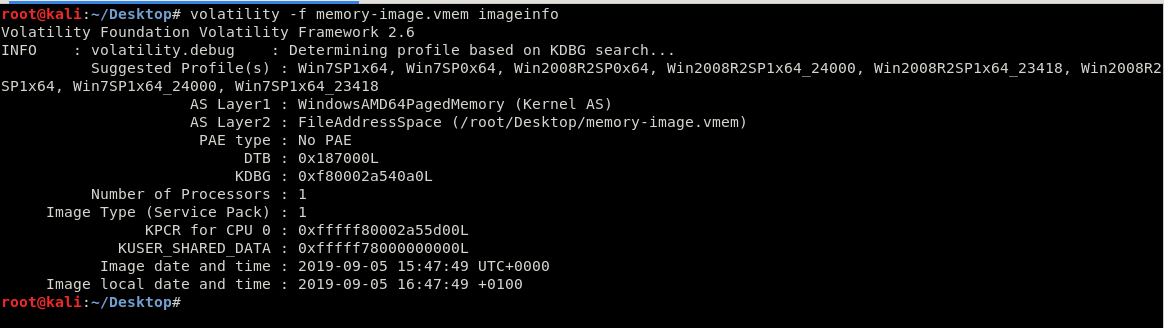 Some research found that these files can be examined with the program Volatility. Time to fire up Kali and take a look.