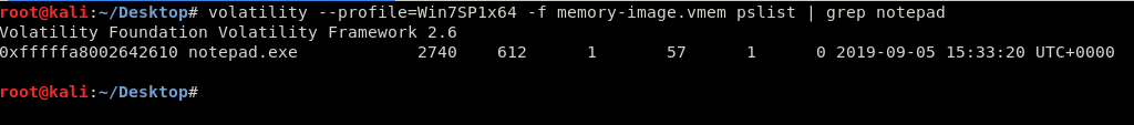 Looks like the suggested profile is Win7SP1x64. Since the goal is to find out what was printed on the password list, using pslist and grep to find notepad should be a good start here.