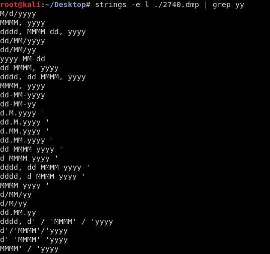 Great! With the dump, now I can search for the flag. The first go around of running strings gave way to many results. Consulting the challenge page there was a note to remove a second y from the flag. Maybe this can be leveraged to make the search easier. Running strings with grep for yy made the results much more manageable.