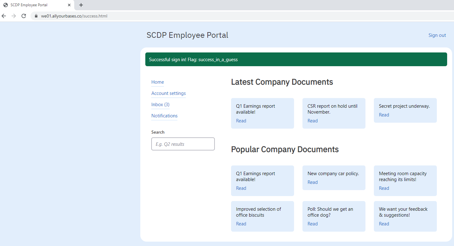 Jackpot, the new page had the flag, success_in_a_guess, and was the ultimate goal. Done.