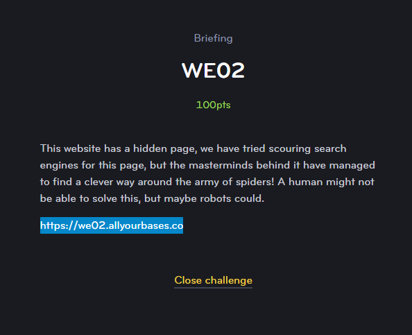 Visiting the site, there is not a ton to look at. Since the page is hidden, I decided to take a look at the good old fashioned robots.txt file.