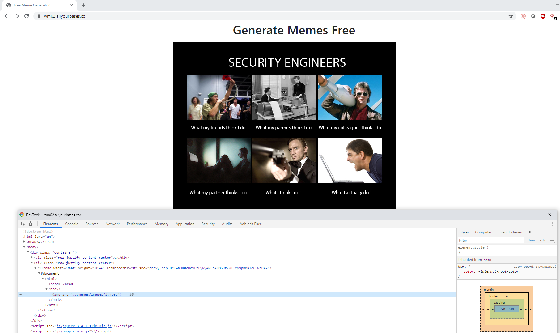 Or not….womp womp. At least now I know where the flag is so now the question is how to get it. Taking a closer look at the memes I noticed a proxy while inspecting the page.