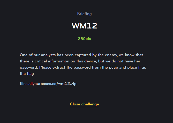 This was listed with the WM challenge name making it a web challenge but gave users a PCAP to shuffle through for information.