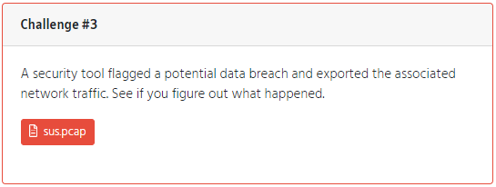 Challenge #3 required participants to dig through a PCAP file to find the flag.