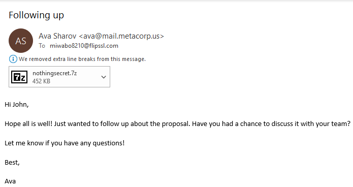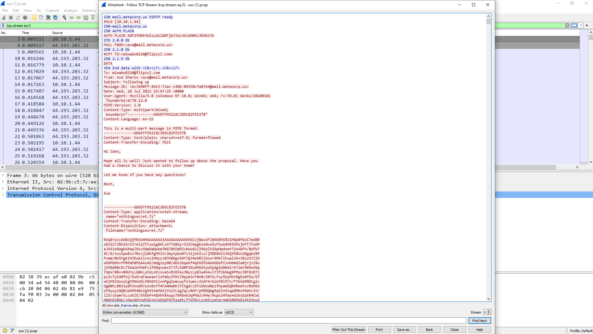 Great, we can see a zipped file being sent named “nothingsecret.7z”